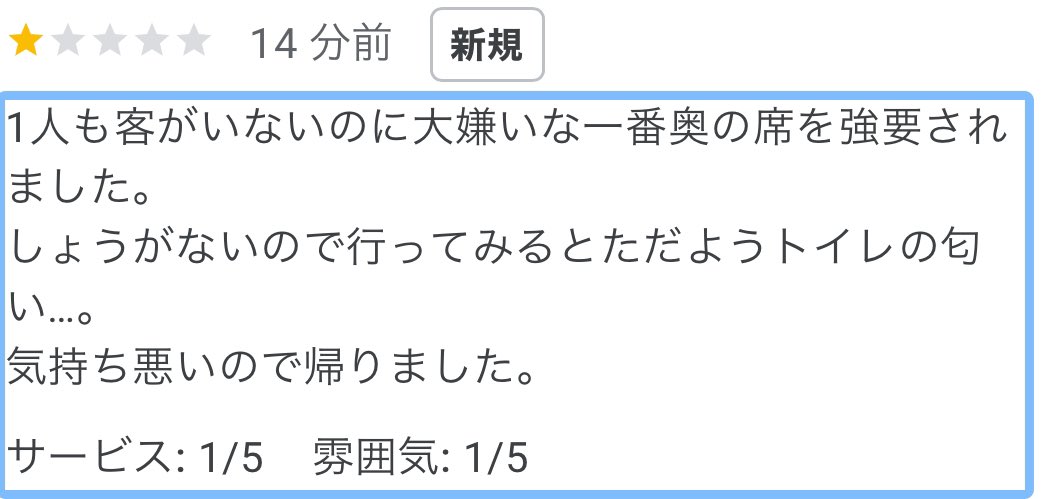 もう星1つけるのを前提に店に来てるよな