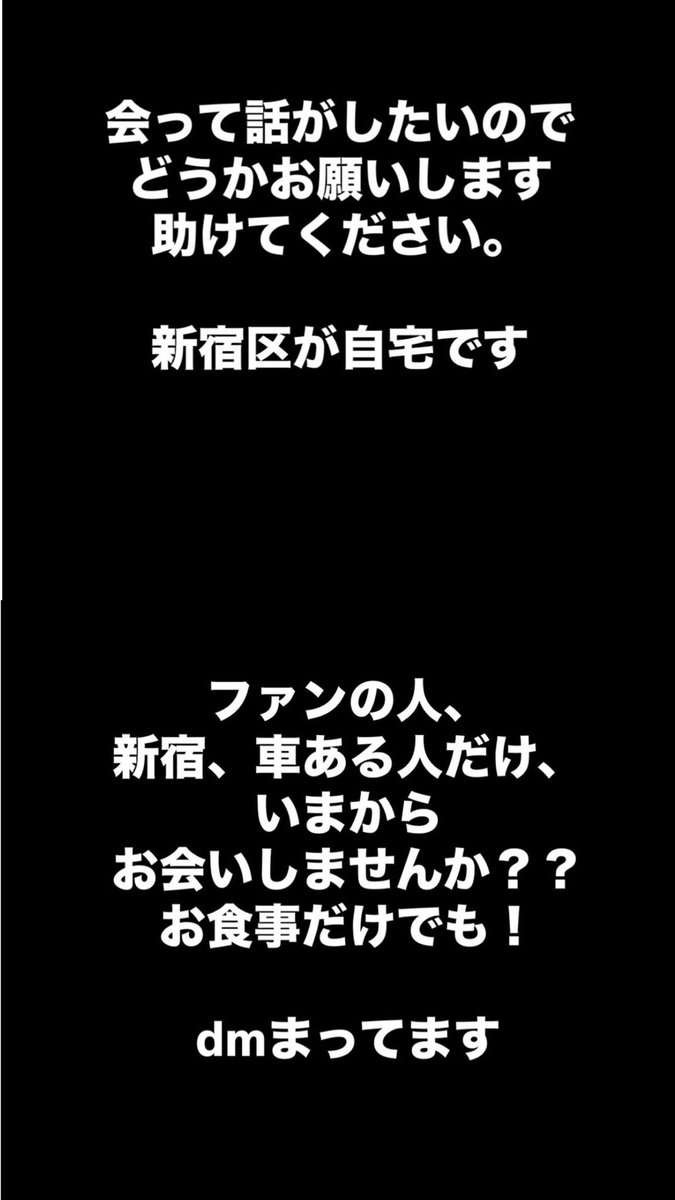 「本当に助けてくださる方、出来ること何でもするのでdmください 生き地獄すぎ」と訴えた。