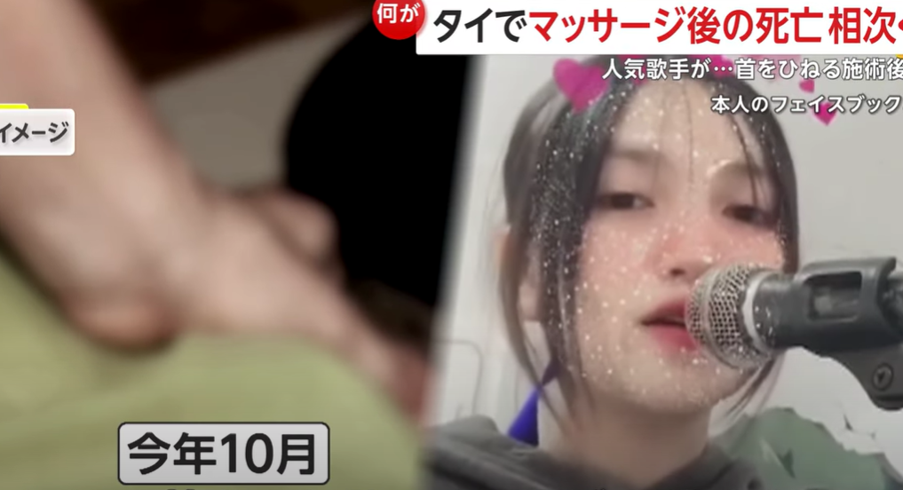 東北部ウドンタニでは、首をねじるなどの激しいマッサージを複数回にわたって受けたタイ人の20歳の女性歌手が、脳浮腫と血液の感染症が原因で8日に死亡しました。