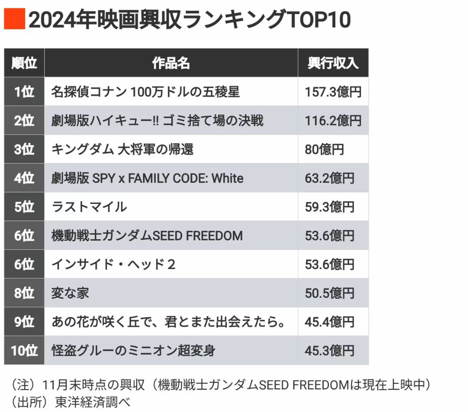 24年の映画興収「年間トップ10」示すヒットの傾向。