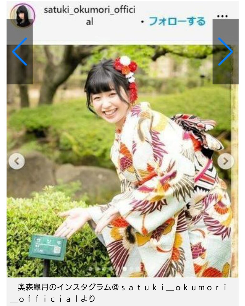 妻で女優、タレントの奥森皐月(20)がこの日、成人式に出席したことを笑顔で報告した。