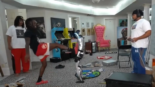 Kai Cenat’s $70k AI humanoid robot just tried running away from the AMP house because it kept getting kicked and bullied by Kai, Agent & Fanum 😭😭 pic.twitter.com/NA0aN25Asq