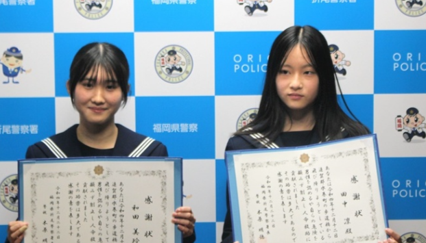 飛び降り寸前の男性…中学生2人が泣きながら腕や足つかみ救う 福岡県警折尾署が感謝状