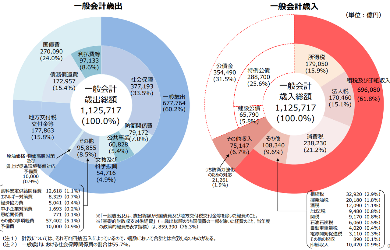 令和6年度一般会計予算 歳出・歳入の構成