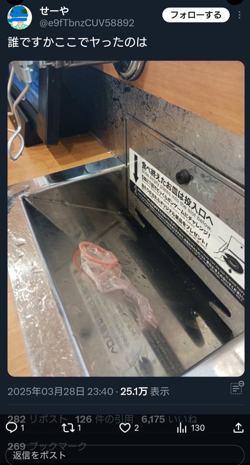 公式サイトでは「当店店舗での迷惑行為について」との文書が掲載され、「先日よりご心配をお掛けしています、当社店舗における迷惑行為につきまして、当社の独自調査によって、該当店舗と実行者についてはほぼ特定できていましたが、昨日、実行者を名乗る者から当該店舗に、謝罪したいとの連絡がありました」と報告した。