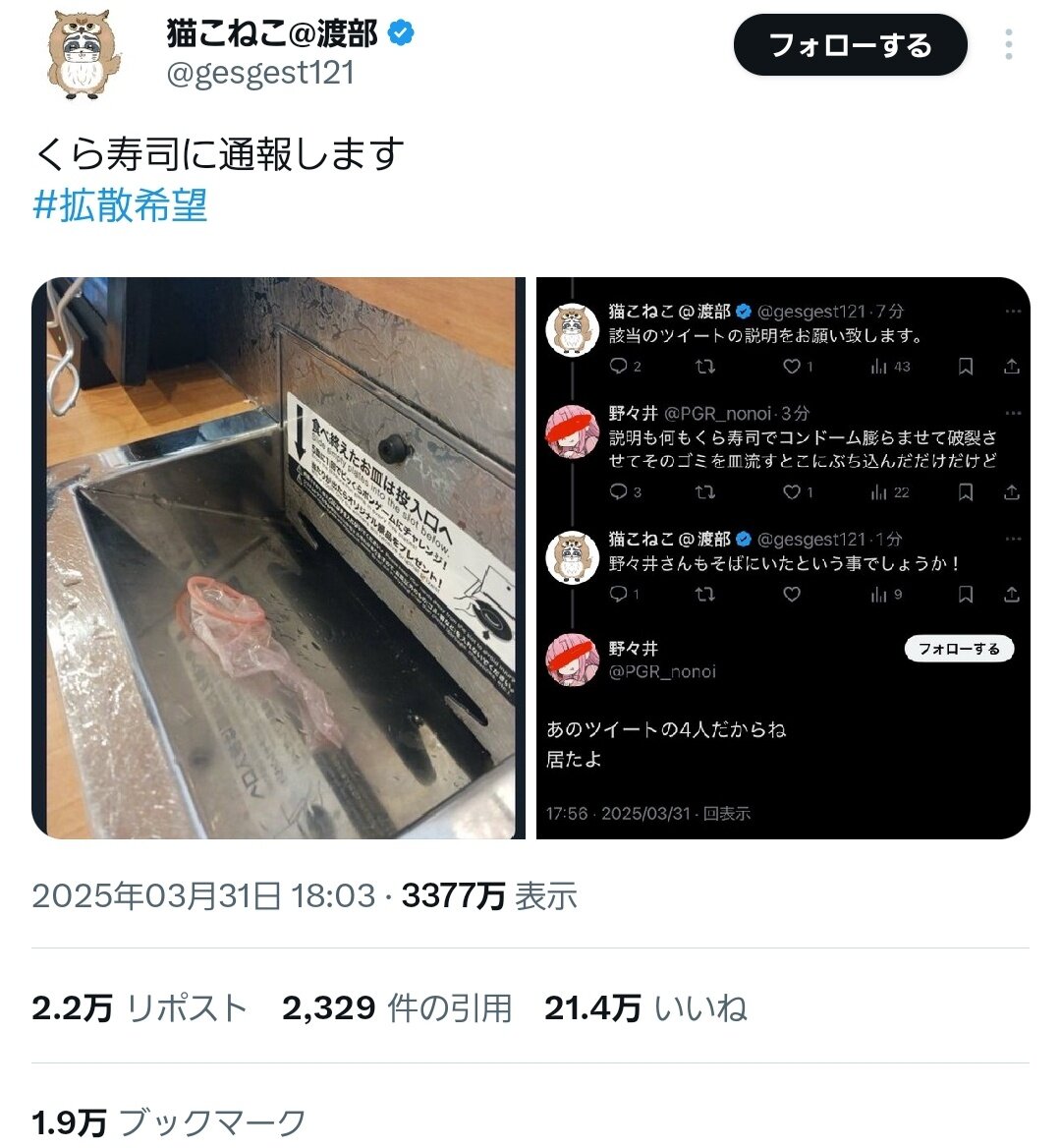 — 無添くら寿司【公式】 (@mutenkurasushi) April 3, 2025
