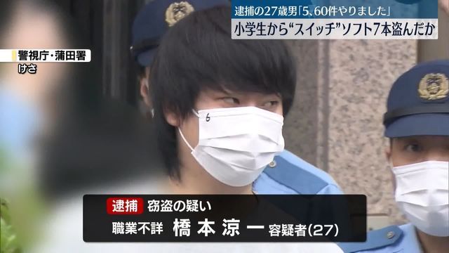 警視庁によりますと、橋本涼一容疑者は今年2月、東京・大田区のマンションの敷地内で遊んでいた小学生が置いていたカバンから「ニンテンドースイッチ」のソフト7本、時価2万1000円相当を盗んだ疑いがもたれています。